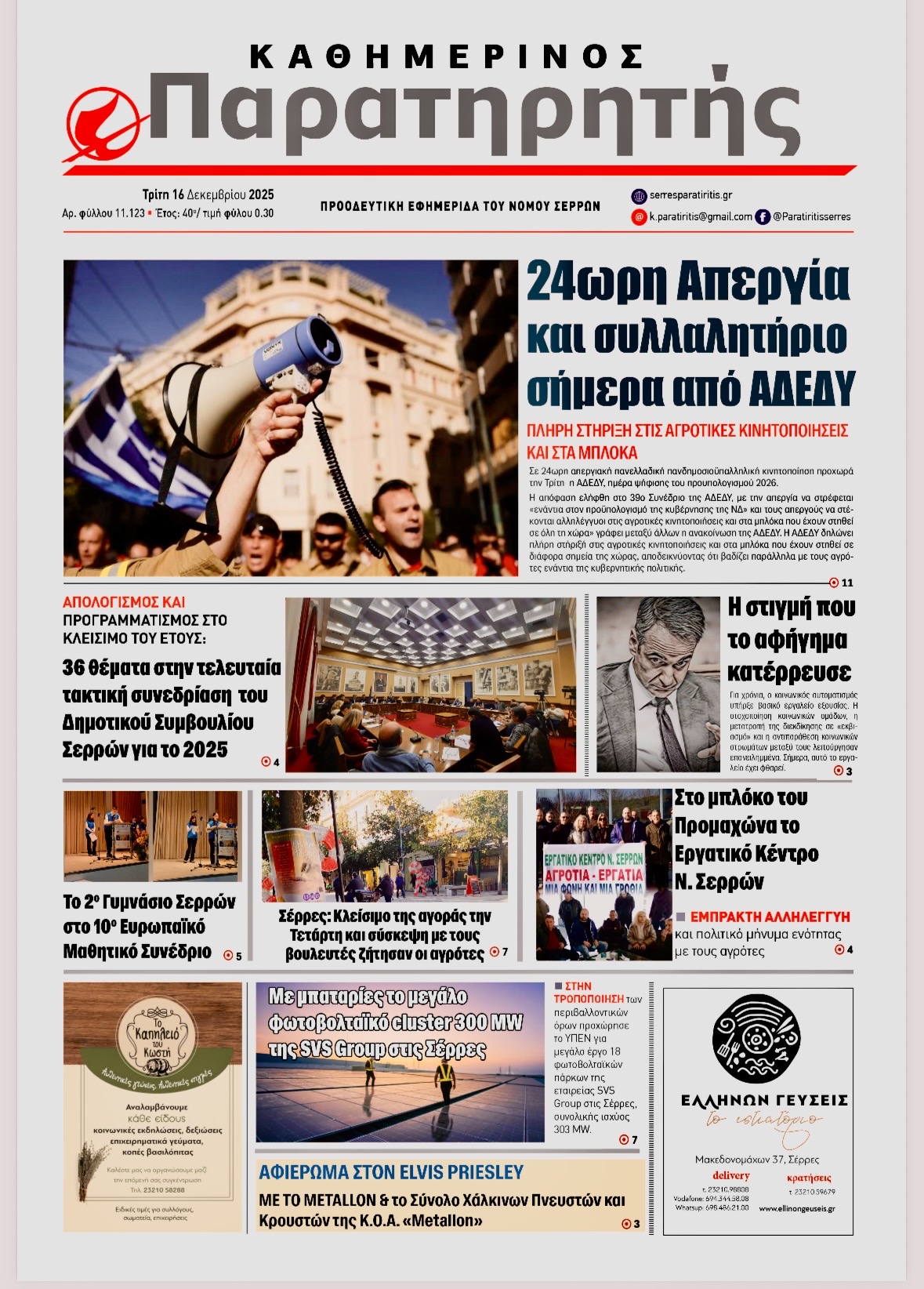 Συμμετοχή του Δήμου Σερρών στην κινητοποίηση των Δήμων – Κλειστές οι υπηρεσίες στις 16 Δεκεμβρίου