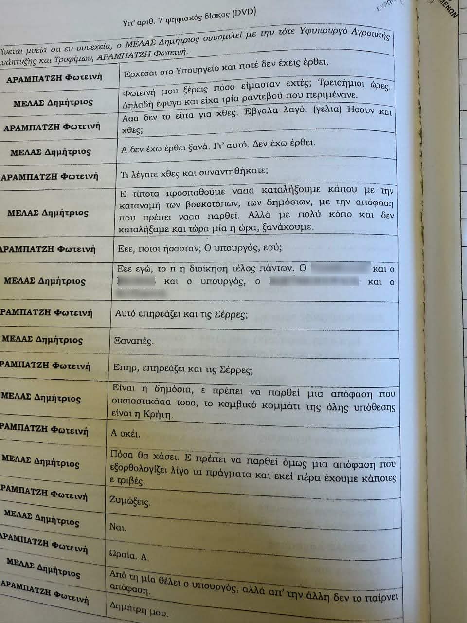 Η συνομιλία που υπάρχει μέσα στο διαβιβαστικό αφορά συνάντηση με τον υπουργό Αγροτικής Ανάπτυξης, το κομβικό κομμάτι που είναι όλη η Κρήτη και το πόσο επηρεάζει η κατανομή των βοσκότοπων τις Σέρρες.