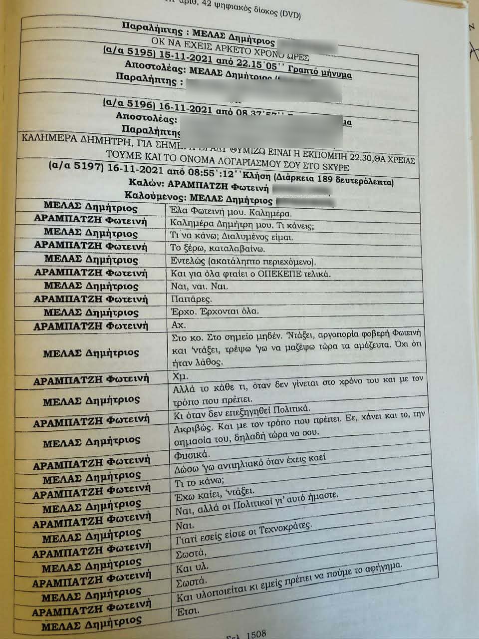 Στο επίκεντρο των συνομιλιών βρίσκεται η τότε υφυπουργός Φωτεινή Αραμπατζή και ο πρόεδρος του οργανισμού Δημήτρη Μελά , με τους διαλόγους τους να σκιαγραφούν ένα δίκτυο εξυπηρετήσεων που εκτείνεται από μεμονωμένα αιτήματα μέχρι πολιτικά διασυνδεδεμένες παρεμβάσεις.