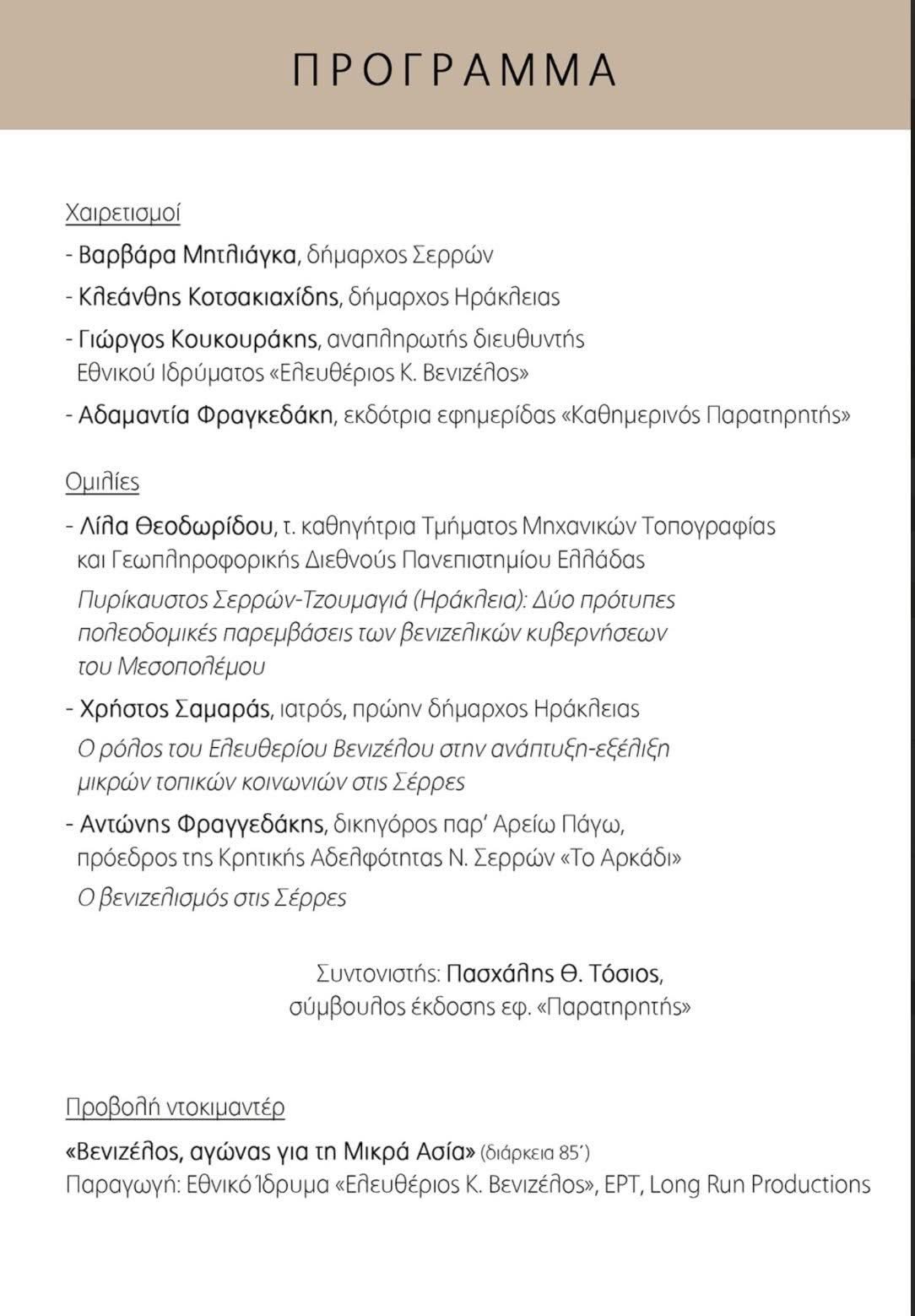 «Η καταλυτική συμβολή του Ελευθερίου Βενιζέλου στην ανασυγκρότηση της πόλης και της ευρύτερης περιοχής των Σερρών»