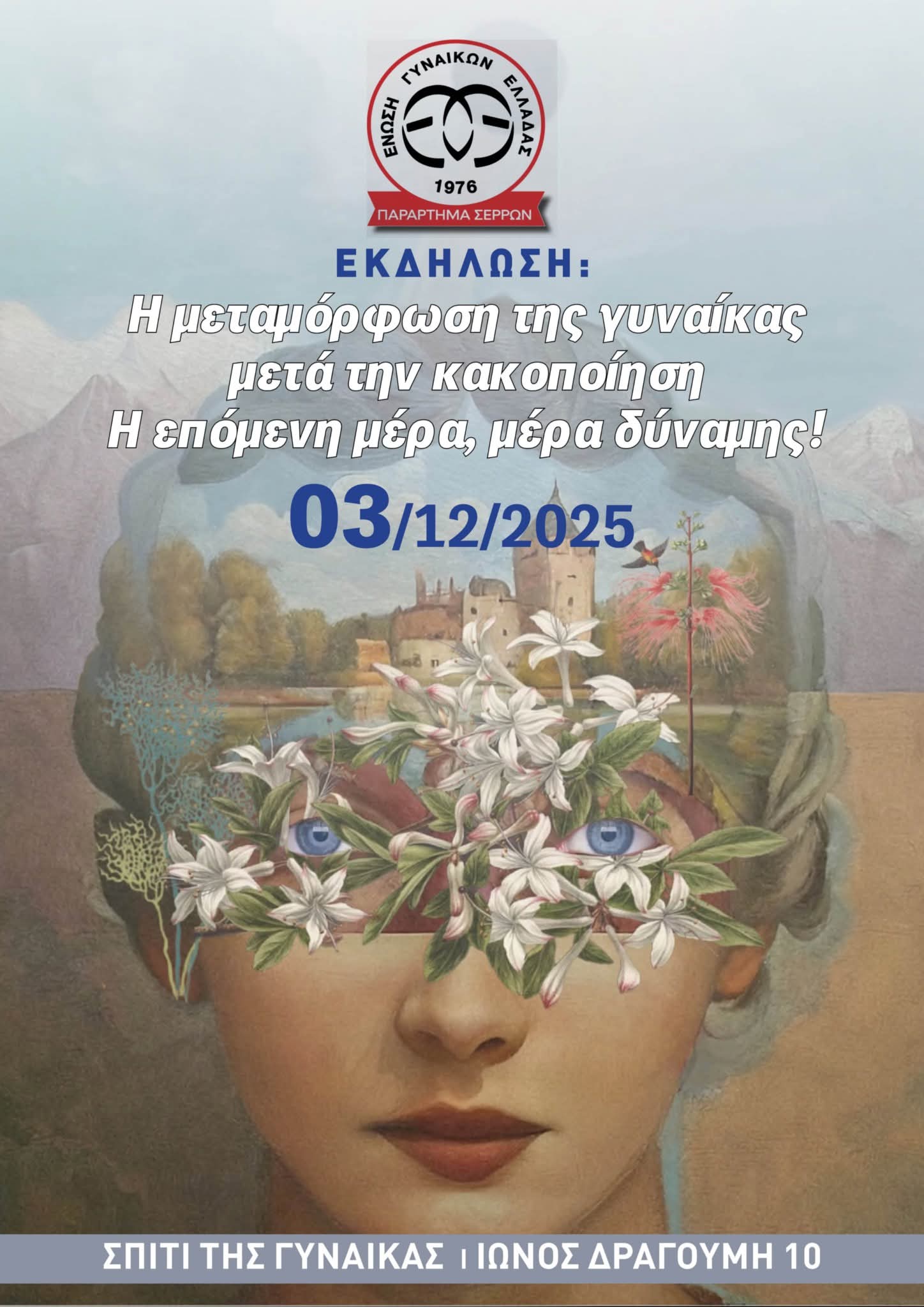 «Η μεταμόρφωση της γυναίκας μετά την κακοποίηση – Η επόμενη μέρα, η μέρα δύναμης» - Ειδική συνάντηση μελών και φίλων της ΕΓΕ Σερρών – Τετάρτη 3 Δεκεμβρίου