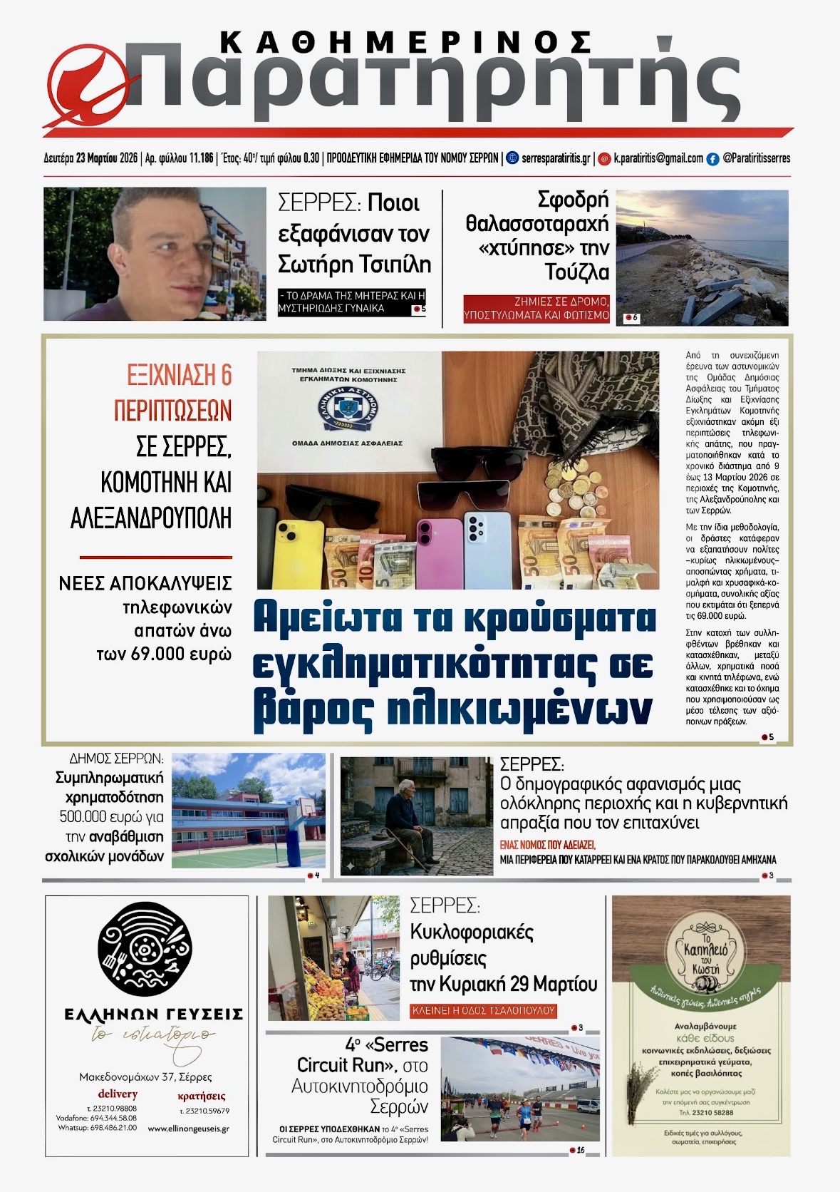 ΕΞΙΧΝΙΑΣΤΗΚΑΝ 7 ΥΠΟΘΕΣΕΙΣ ΑΠΑΤΩΝ ΣΕ ΠΕΡΙΟΧΕΣ ΤΗΣ ΚΟΜΟΤΗΝΗΣ, ΤΗΣ ΑΛΕΞΑΝΔΡΟΥΠΟΛΗΣ ΚΑΙ ΤΩΝ ΣΕΡΡΩΝ