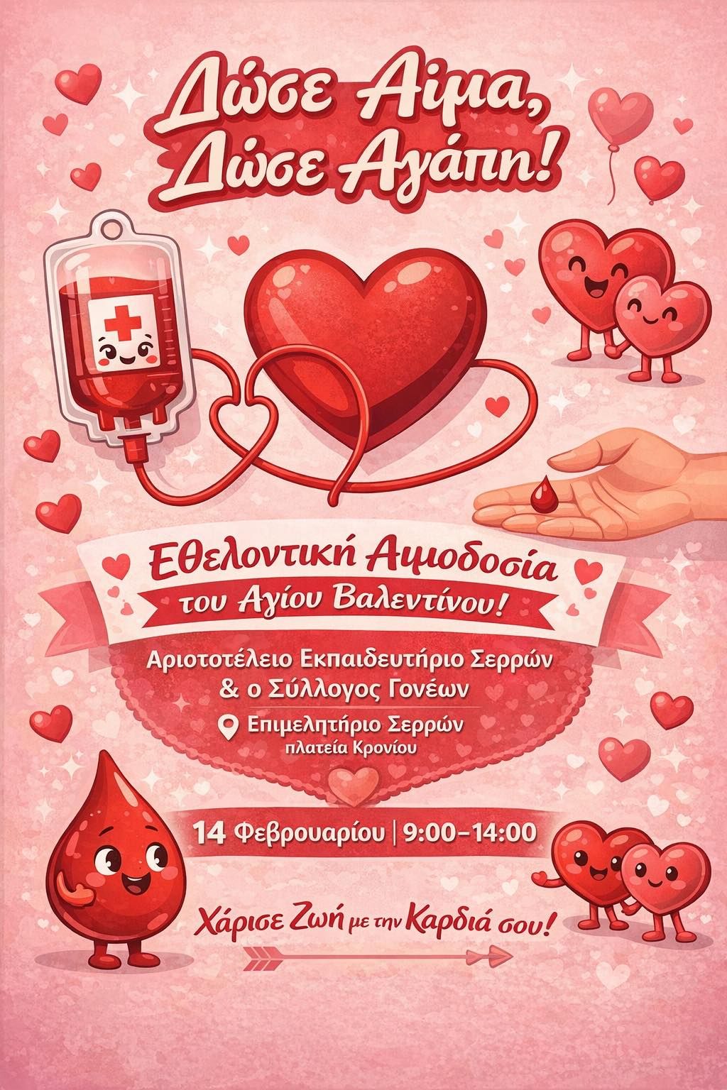 Εθελοντική αιμοδοσία στις 14 Φεβρουαρίου από τον Σύλλογο Εθελοντών Αιμοδοτών του Αριστοτελείου Εκπαιδευτηρίου Σερρών