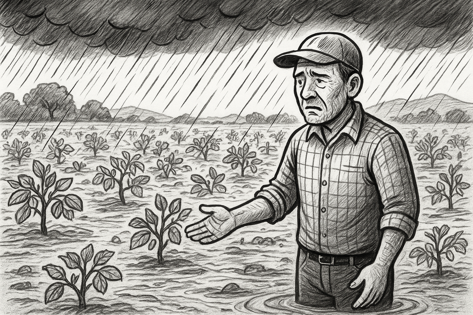 Σύμφωνα με τους αγρότες, οι συνεχείς και έντονες νεροποντές πλημμύρισαν μεγάλα τμήματα αγροτικής γης, με αποτέλεσμα η παραγωγή να σαπίσει μέσα σε ελάχιστο χρόνο. Πολλοί μιλούν για ολική απώλεια της φετινής σοδειάς, γεγονός που επιτείνει την οικονομική πίεση σε μια ήδη δύσκολη περίοδο για τον αγροτικό κόσμο.